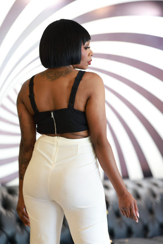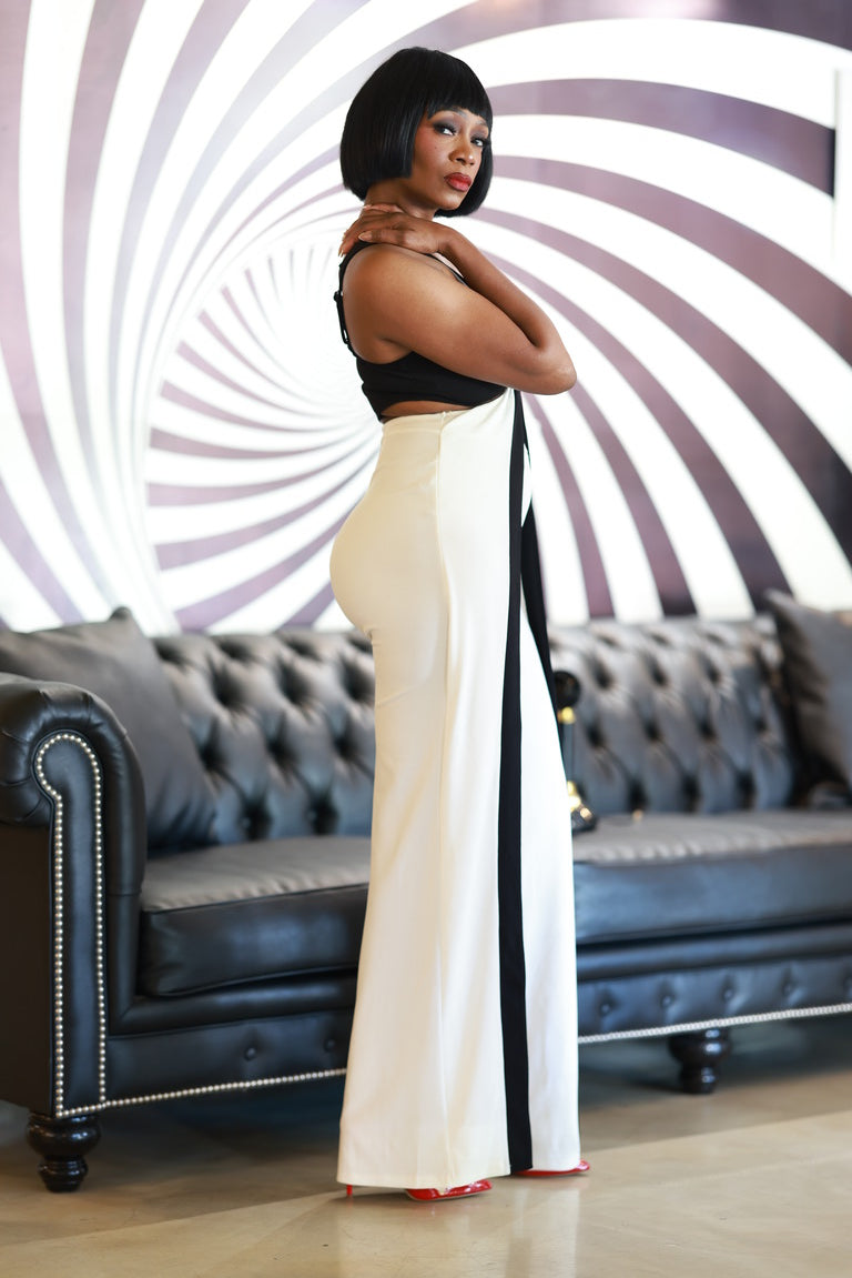 Make a statement in Eternal Contrast. The dramatic interplay of black and white creates a timeless look, while the cutout front and flowing lines add daring modernity. This piece is bold, chic, and unforgettable — just like the woman who wears it.